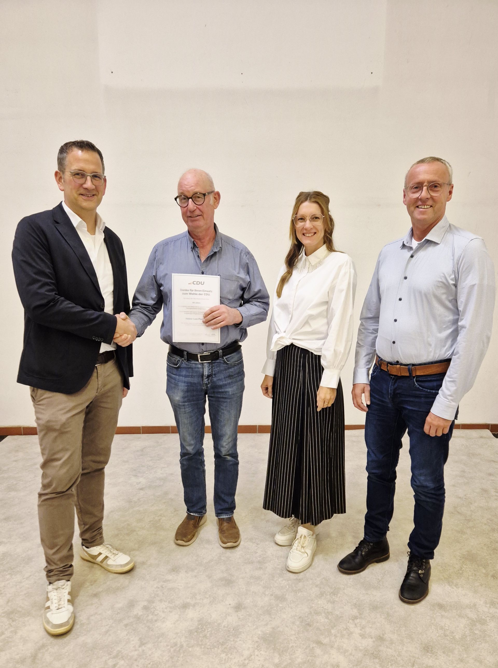 Für 40 Jahre CDU-Mitgliedschaft wird Leo Flecken von Diana Otten und Martin Krükel geehrt.