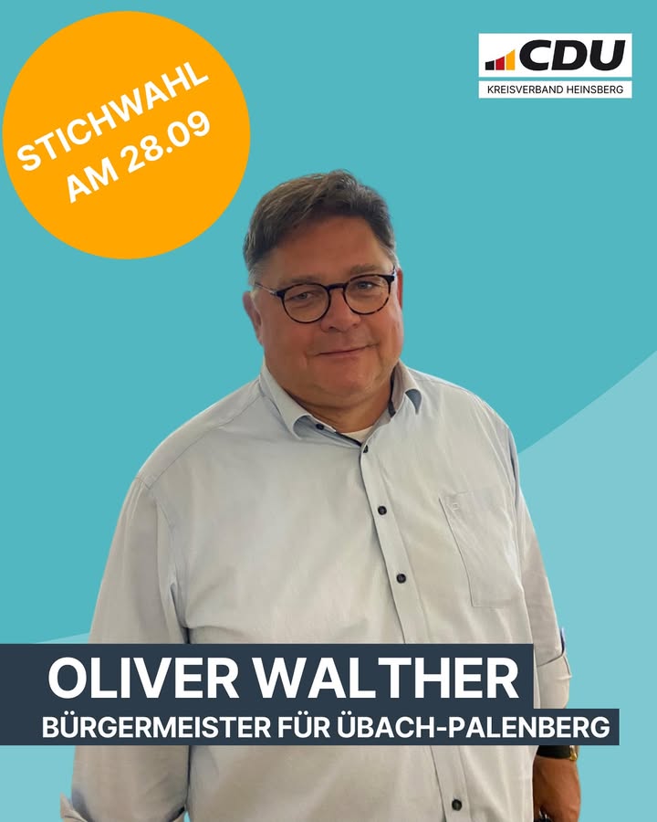 🚨 Am Sonntag ist Stichwahl in Übach-Palenberg! 🗳️Unser CDU-Mann Oliver Walther ist der beste Kandidat ✅ ? also nutzt Eure Stimme und wählt ihn zum Bürgermeister für Übach-Palenberg! 💪🇩🇪✨👉 Jede Stimme zählt ? geht wählen! 🙌#OliverWalther #Stichwahl #ÜbachPalenberg #CDU #Kommunalwahl #ZukunftGestalten #TeamCDU