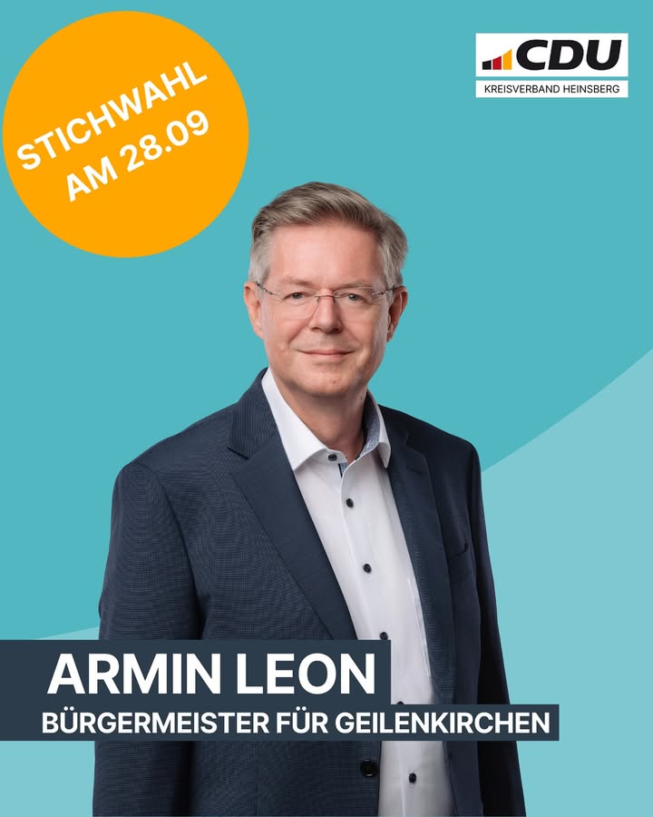 🗳️ Am Sonntag ist Stichwahl in Geilenkirchen! Mit Armin Leon haben wir den richtigen Kandidaten fürs Bürgermeisteramt ✅ ? engagiert, kompetent und bereit für Geilenkirchen! 💪💙👉 Also nutzt Eure Stimme und wählt am Sonntag Armin Leon zum Bürgermeister! 🙌#ArminLeon #Stichwahl #Geilenkirchen #CDU #Kommunalwahl #TeamCDU #ZukunftFürGeilenkirchen