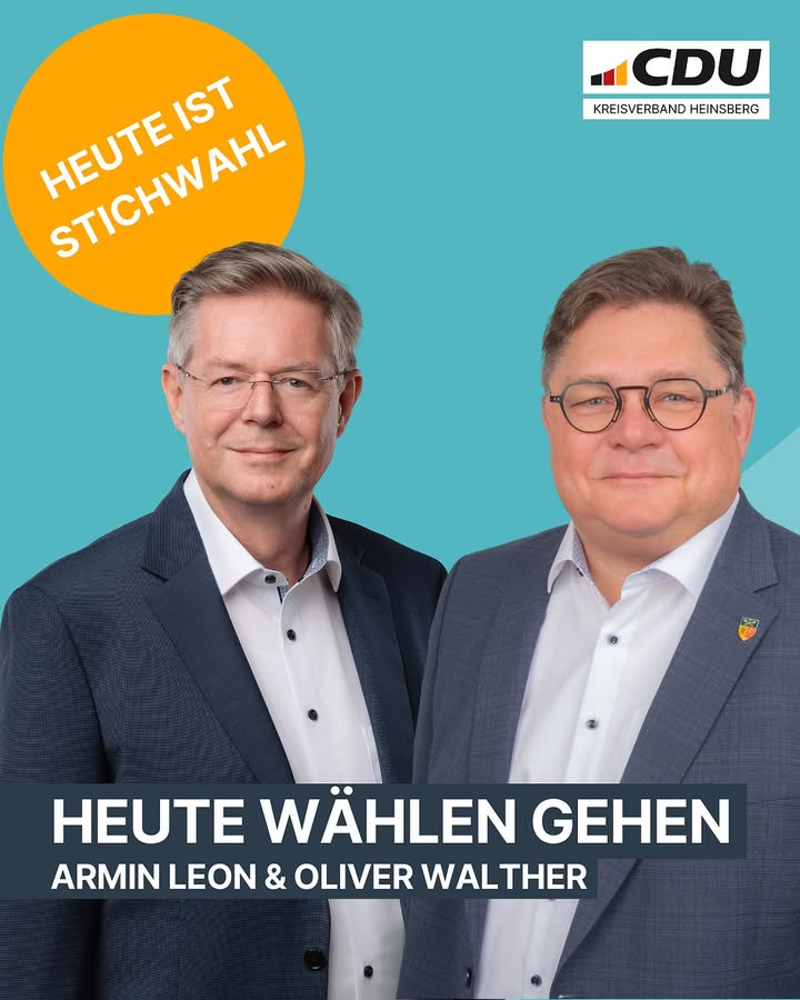 🚨 Heute ist Stichwahl-Tag! 🗳️In Übach-Palenberg und Geilenkirchen könnt Ihr heute über die Zukunft entscheiden. 🙌👉 Nutzt Eure Stimme und wählt Oliver Walther & Armin Leon zu Euren Bürgermeistern! 💪💙✨#Stichwahl2025 #OliverWalther #ArminLeon #ÜbachPalenberg #Geilenkirchen #CDU #TeamCDU #ZukunftGestalten