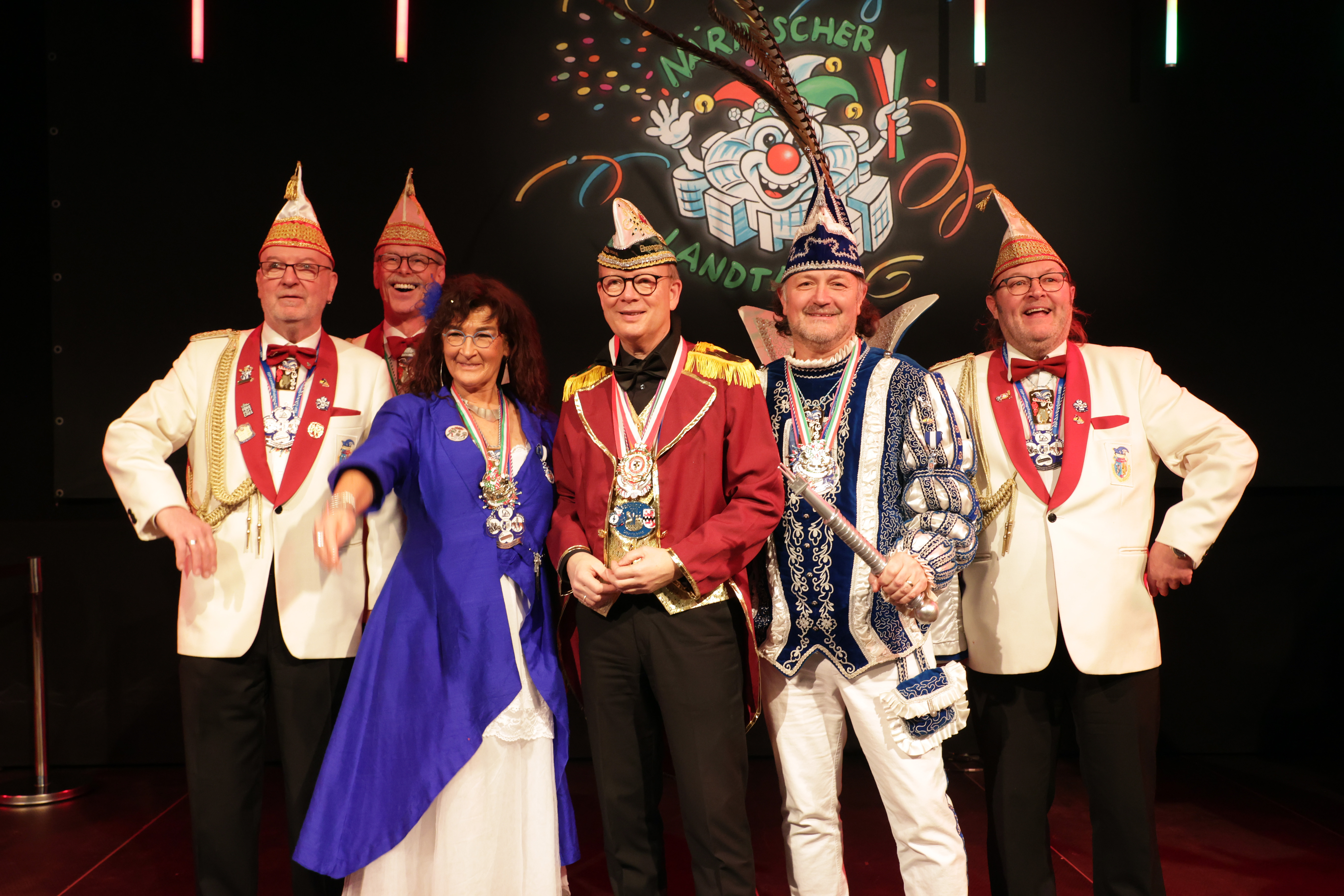 Auch das von Thomas Schnelle eingeladene Prinzenpaar Alexander und Elisabeth Tetzlaff und die 1. Vorsitzende Nina Lennartz von der KG Grubenrand Piraten e.V. aus Keyenberg feierte beim Närrischen Landtag. Aus den Händen von André Kuper erhielten sie den vom Düsseldorfer Karnevalswagenbauer Jacques Tilly entworfenen Sessionsorden.
